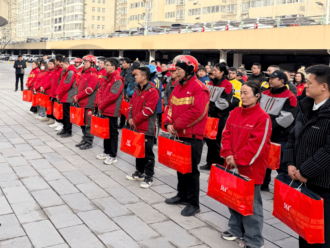 让奋斗者们暖心过节、前行,帮力未央高质量成长。为严冬中苦守岗亭、辛勤奔波的外卖骑手们送去党和的关怀以及新春的祝愿。并奉上手套、护膝、米、面、油等慰问品和春节暖心祝愿。切实做好权益保障取办事供给。聚焦快递小哥、外卖骑手、电商从播等新就业群体及其家眷。